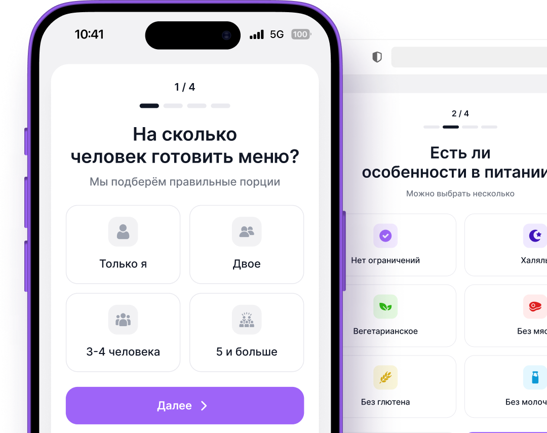 Разнообразный и сбалансированный рацион без лишних усилий. Укажите предпочтения и ограничения — и мы составим меню которое подходит именно для вас.
